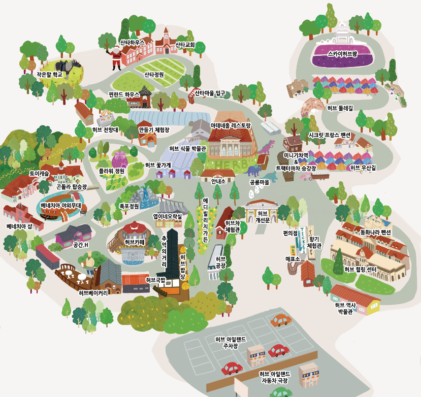 포천에 위치한 허브아일랜드는 100여 종의 허브를 테마로 한 테마파크입니다. 허브식물박물관, 허브힐링센터, 허브레스토랑 등 다양한 시설이 있어 허브의 향기와 함께 휴식을 취할 수 있습니다. 특히 야경이 아름다워 데이트 코스로도 유명합니다.