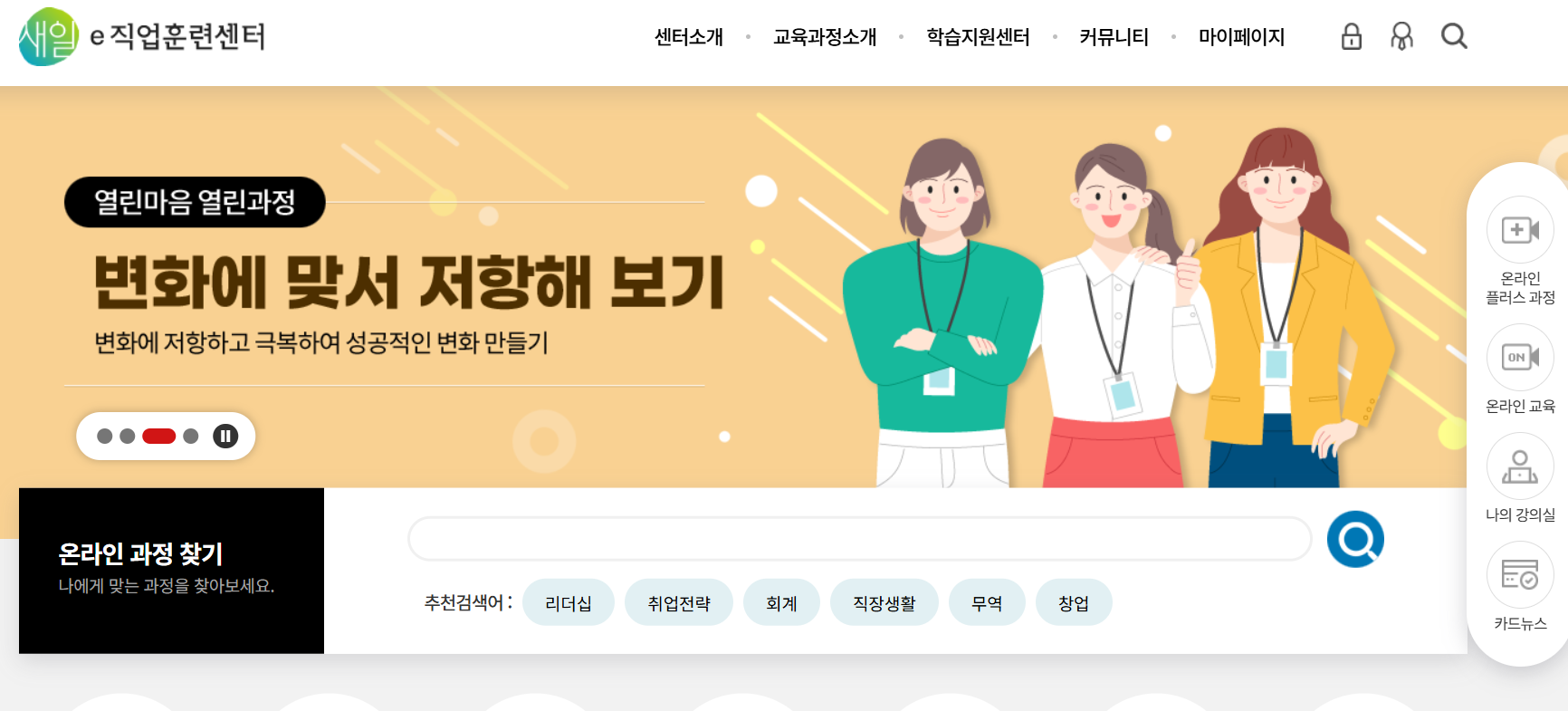 시간과 장소의 제약 없이 필요한 역량을 강화할 수 있습니다. [새일e직업훈련센터 바로가기]