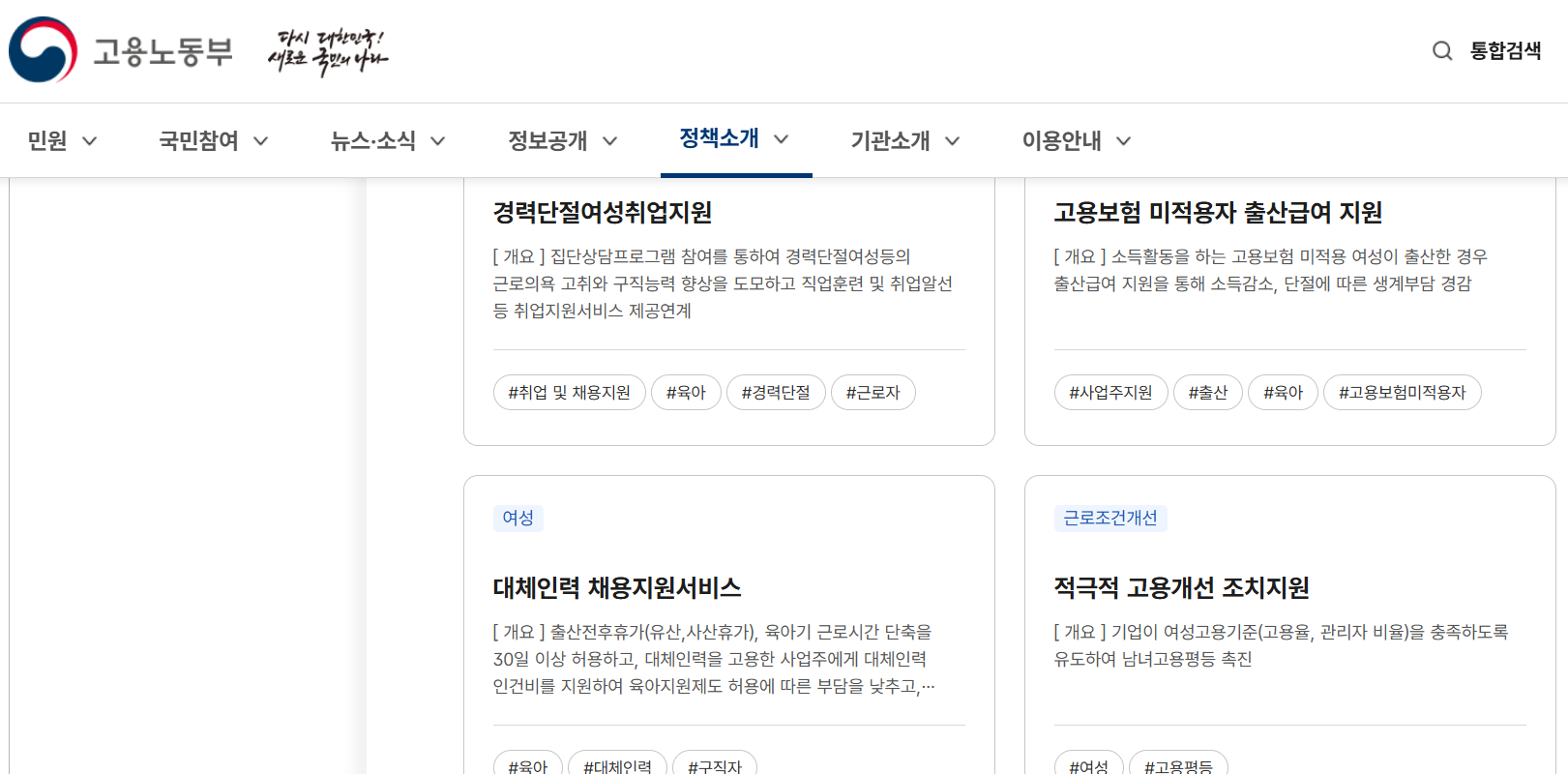https://www.moel.go.kr/policyitrd/policyItrdList.do?searchMclsCdList=D