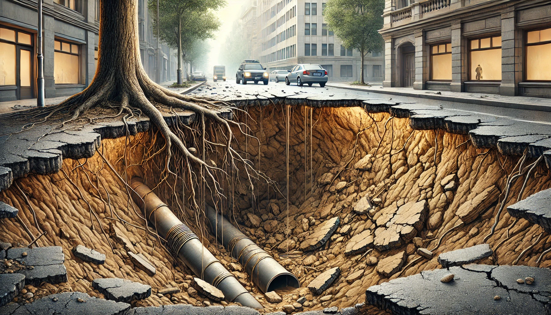 - 노후화된 하수관 누수: 하수관이 오래되면서 균열이 생기거나 파손되면 물이 새어나와 주변 토양이 씻겨 나가고, 결국 지반이 약해져 싱크홀이 발생할 수 있습니다.