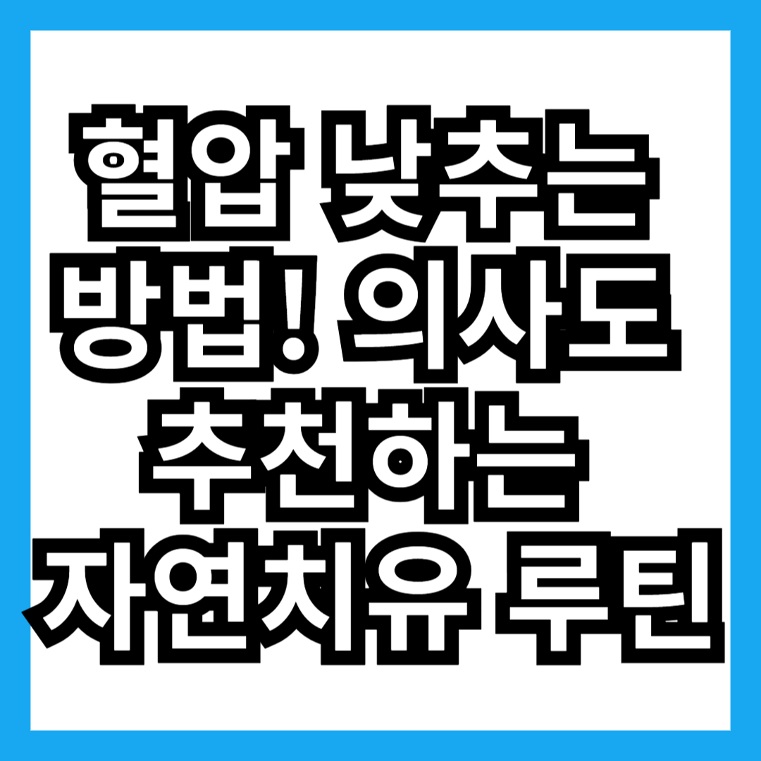 혈압 낮추는 방법, 의사도 추천하는 자연치유 루틴