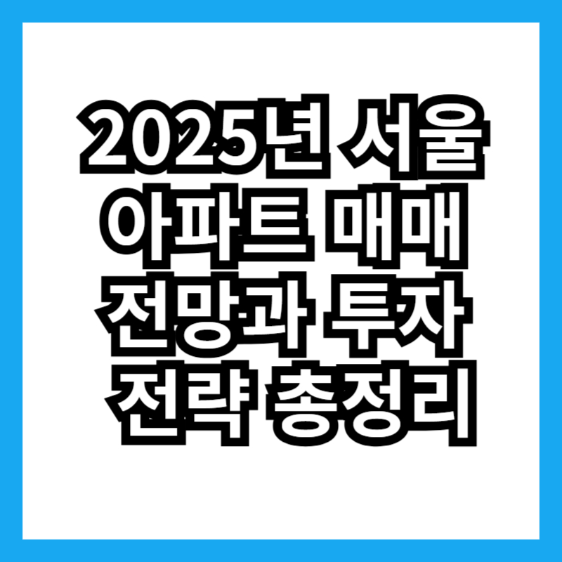 2025년 서울 아파트 매매 전망과 투자 전략 총정리