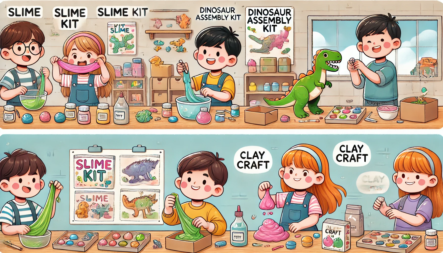 추천: 슬라임 만들기, 공룡 조립 키트, 점토 공예