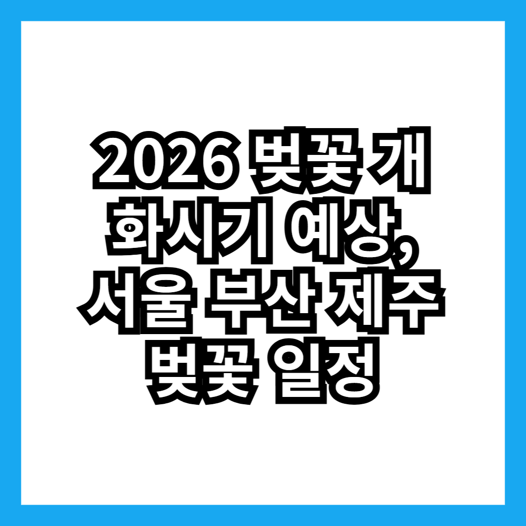 2026 벚꽃 개화시기는 제주도를 시작으로 3월 말부터 전국적으로 벚꽃이 피기 시작할 것으로 예상된다. 서울과 수도권 지역은 보통 4월 초에 벚꽃이 절정을 맞이하는 경우가 많다.